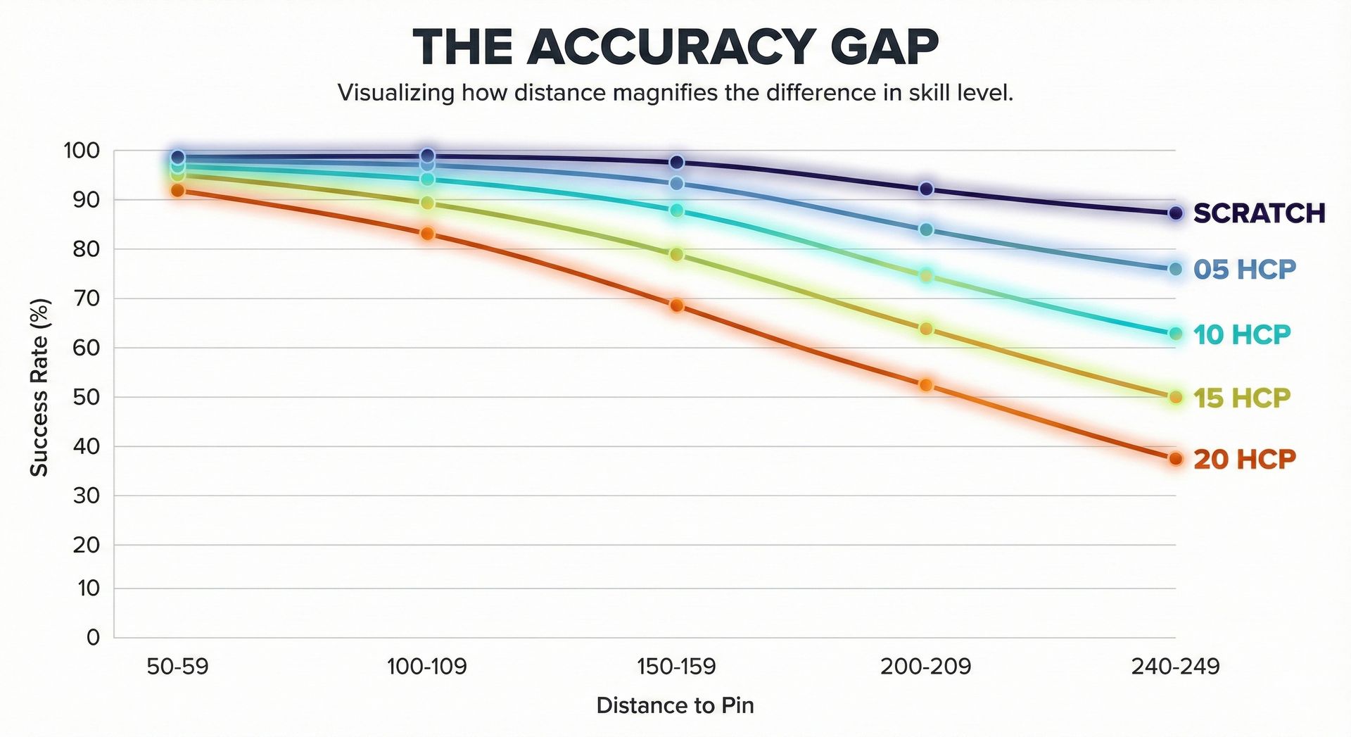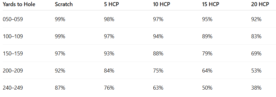 Everyone is pretty good. Scratch sits at 99%, a 20-handicap is still at 92%. The gap is only 7 percent.